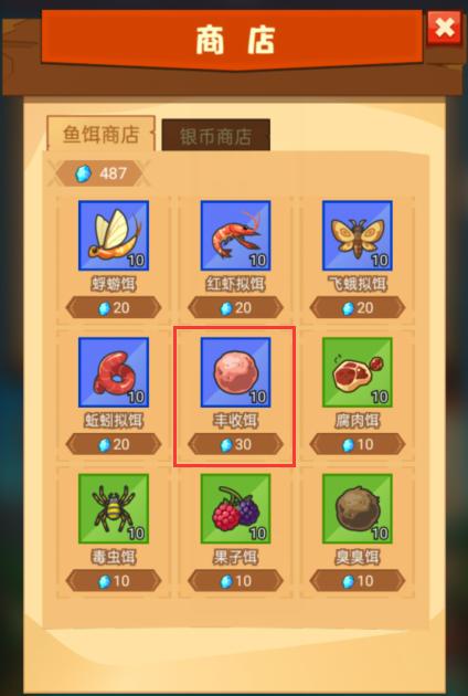 2、使用商店的丰收饵钓,30钻石10个(好贵)
