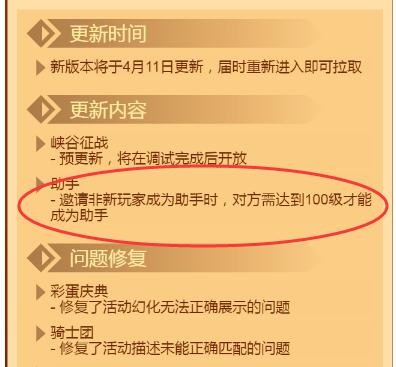 在游戏疯狂骑士团中,邀请非新玩家成为助手的时候,对方需要达到100级才能成为助手。