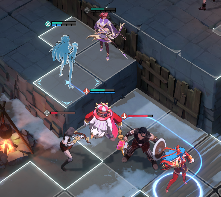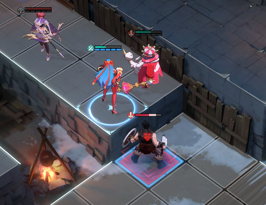 下个回合就只需要让三人维持堵住这个高台不让下方的战士型敌人上来的形势,顺手将盗贼解决掉就已经宣告了本次关卡的胜利。