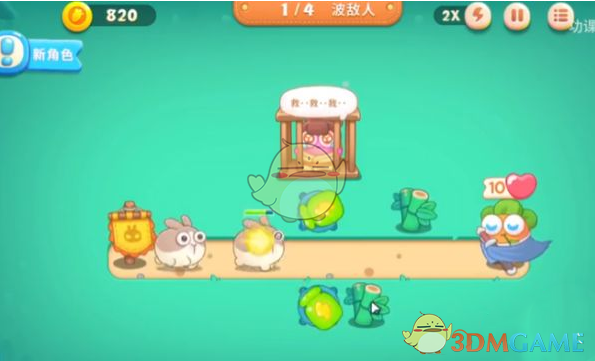 2.在兔子第二波来袭前一起攻击上排后方的牢笼解救npc