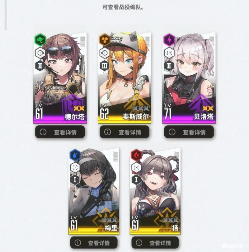 然后根据职业和角色特性,选择1盾+1辅+3火力。
