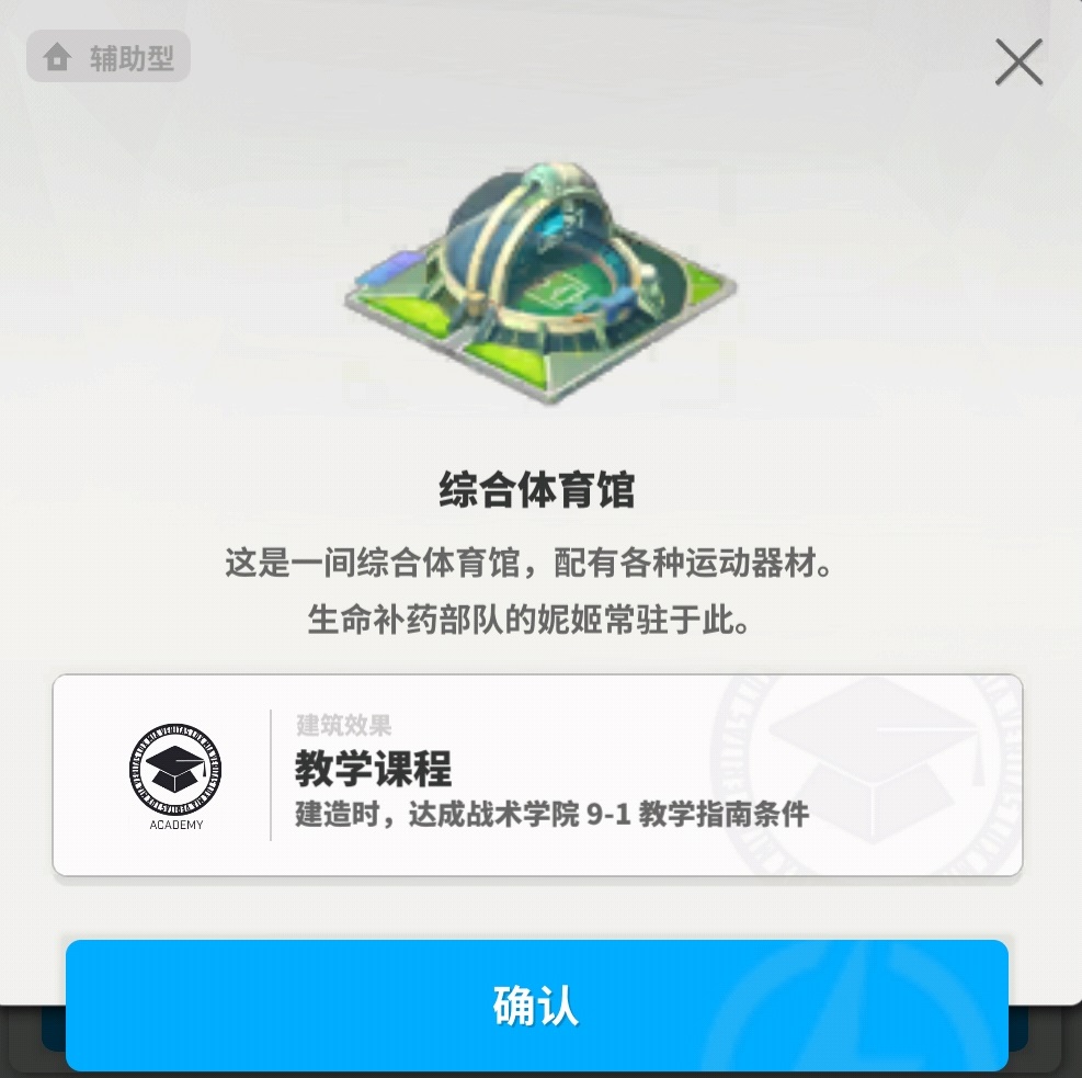 综合体育馆是9-1战术学院开启的必要条件。