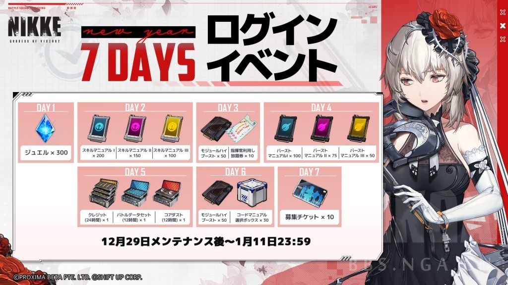 NIKKE胜利女神元旦活动签到送什么?《NIKKE胜利女神》游戏即将在年底更新新年版本活动,可能还有一些小伙伴还不知道新版本中登陆签到会送什么奖励的,下面小编给大家带来了NIKKE元旦活动签到奖励一览,感兴趣的小伙伴不要错过一起来了解看看吧。