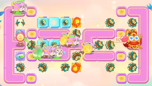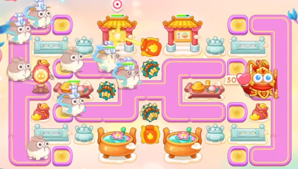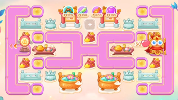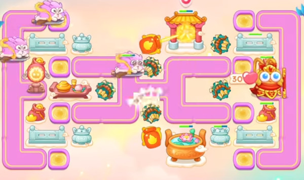 8.在香炉打掉后,箭塔同一列的位置补一个二级箭塔,然后锁右边的钱袋子障碍物。放置更多二级箭塔增加输出。