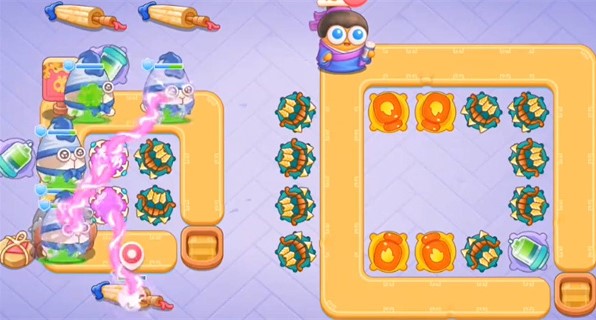 3.然后建造一个紫球,然后点击右侧的壶,在怪物走过去的途中就会被击毁了;