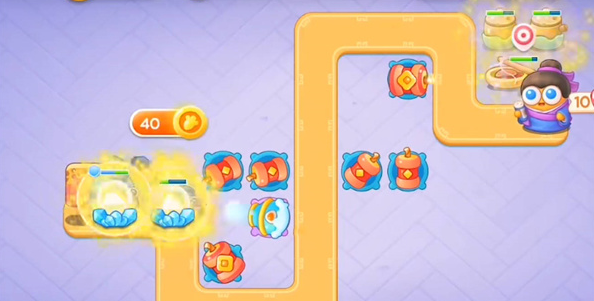 2、将默认的炮仗塔升级到满级,对准上半部分的壶打。