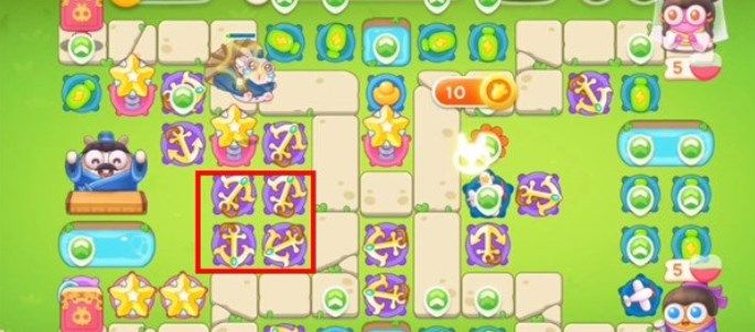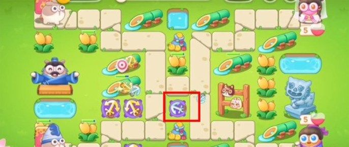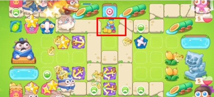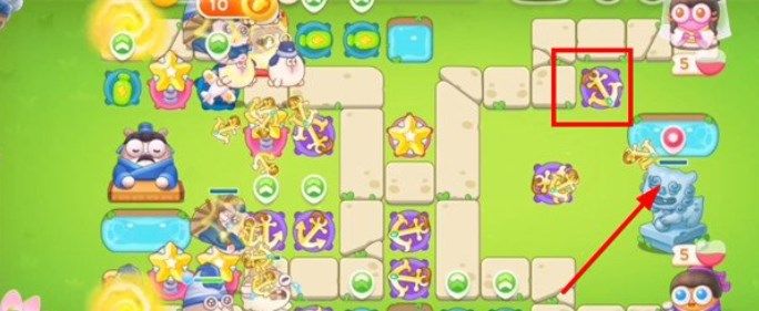 9.第八波在竹子的位置建造船锚,锁定石狮子,这一波可以将场上的道具全部打掉;