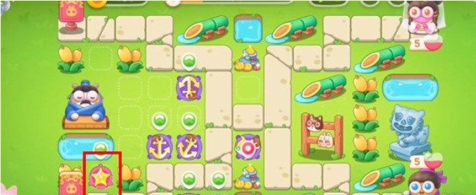 6.第五波锁定上方的植物,并将星星塔升级,这一波道具拆除顺序如下图: