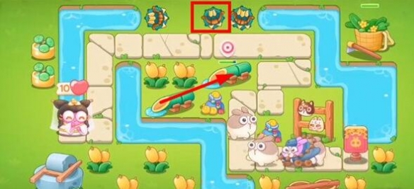 5.第四波小心滚滚兔,红框位置处建造一个泡泡塔,延缓敌人速度;