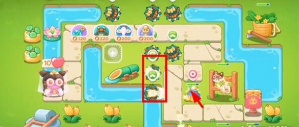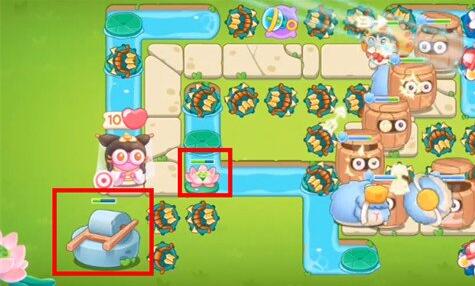 8.这一关的障碍物是非常多的,河道上的莲花千万别漏掉,最后一波将场上剩余道具全部拆除即可;
