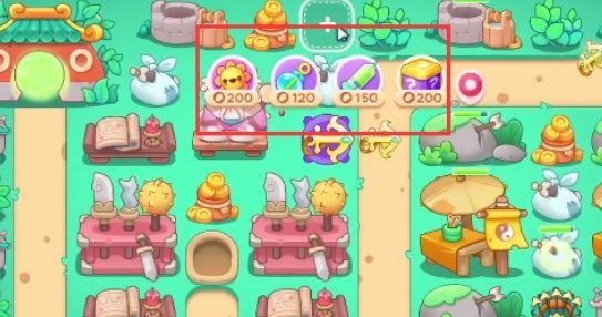 4、开一个道具就尽量放置上满级的鱼刺,之后将所有的鸡腿打给乞丐兔即可,它会给我们四个二级炮塔。