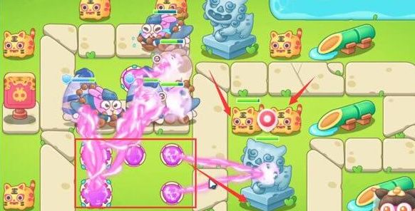5、接着我们第四波魔法球优先清石狮子,清完有4格空地,都放置一级魔法球,再清理附近小障碍物。