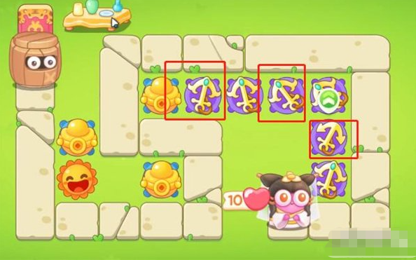 5、第五波清理下面障碍物,上方一排增加两个满级船锚,右侧增加一个二级船锚。