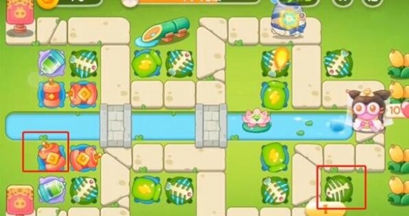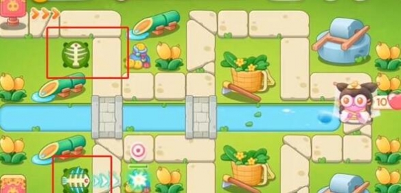 7、第七波左下方加一爆竹升满级,右下方加一鱼骨头。