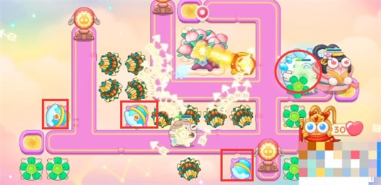 5、打完仙女之后放置雪球在各个拐角处,然后要注意冰冻兔。