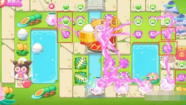 9、我们第7-8波重点在左边开图,打掉米饭后放魔法球,有钱适当升级道具。