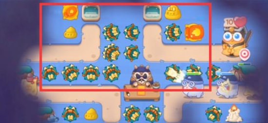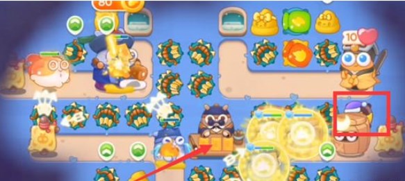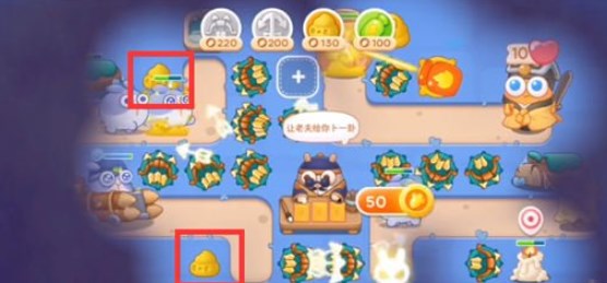 4.第四波右边的道具拆除,向左继续拆除,找到算命兔的符纸,期间可以在拐角处放便便塔,延缓敌人的速度;