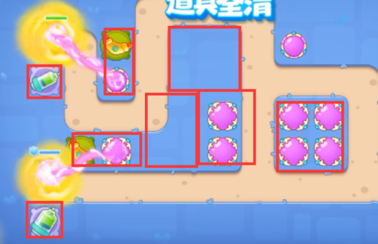 3、大道具打掉后,继续放魔法球,清周围道具。