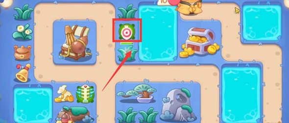 1、首先我们开局在如图所示位置放鱼骨刺,用鱼骨刺拆附近道具。