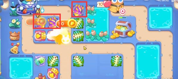 5、小心飞行兔,我们在如图所示的位置放导弹塔,千万别漏怪。