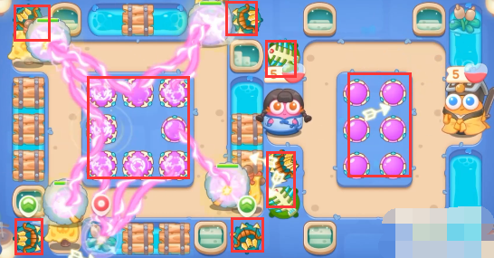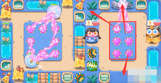 2、首先我们开局放魔法球,把左边道具全清,再继续放魔法球。