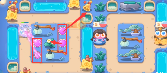 3、接着我们锁定边上铃铛道具,再向右边开图。