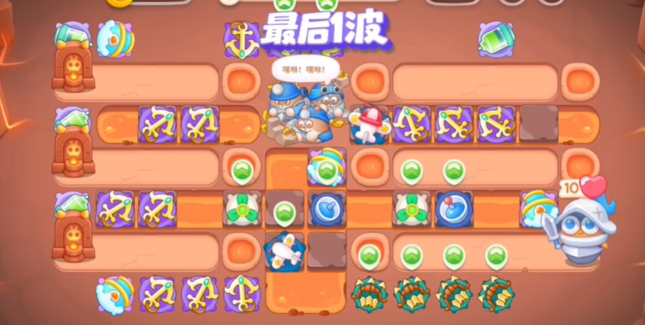5、最后一波阵容如图所示,我们可以参考一下,然后有钱就造炮台并升级,就可以过关了。