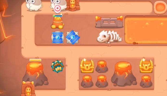 5、宝箱清理完之后,在位置上放置太阳,附近放上箭塔和桶子,然后锁定右边的火山。