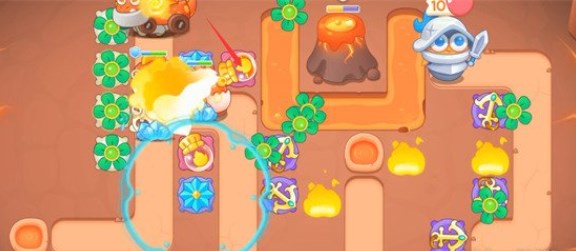 1、开局在如图所示位置放置两个风扇塔,并将风扇塔升至满级,风扇塔可以快速清理旁边的障碍物。