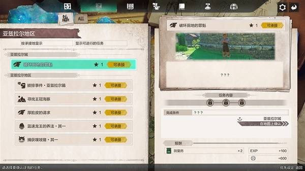 每个任务都设置有其完成条件,满足完成条件后,再次与委托人对话,即可完成任务、获取报酬。