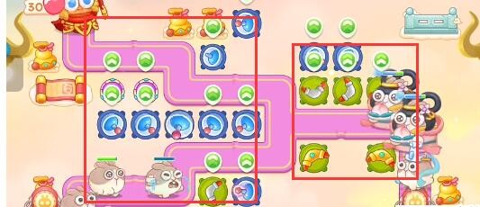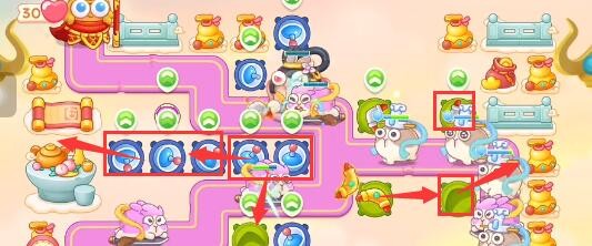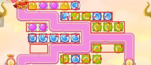 1、本关能够使用的炮塔是:回旋镖、便便、魔法球、雷达、闪电炮,这一关我们推荐使用魔法球+雷达+回旋镖。
