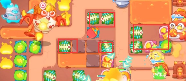 2、开局放置鱼刺开图,下方放置喷火器清怪顺便开图。