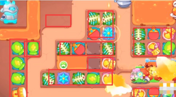 5、打醒武士之后继续向上开图,将道具全清,然后在开出的格子中放置上鱼刺打boss。