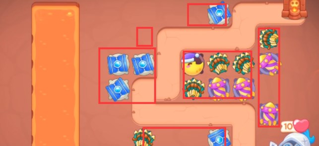 1、这一关可以使用的炮塔是:手电筒、双菱塔、月亮、导弹、多重箭,这一关我们主要输出用多重箭和双菱塔。