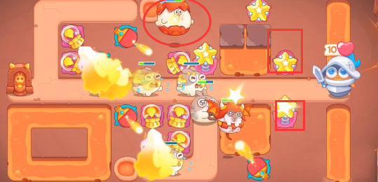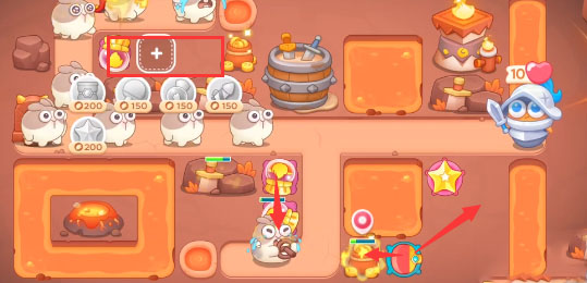 1、这一关可以使用的炮塔是:双菱塔、乒乓球、喷火器、导弹、星星,这一关我们主要输出用喷火器和星星。