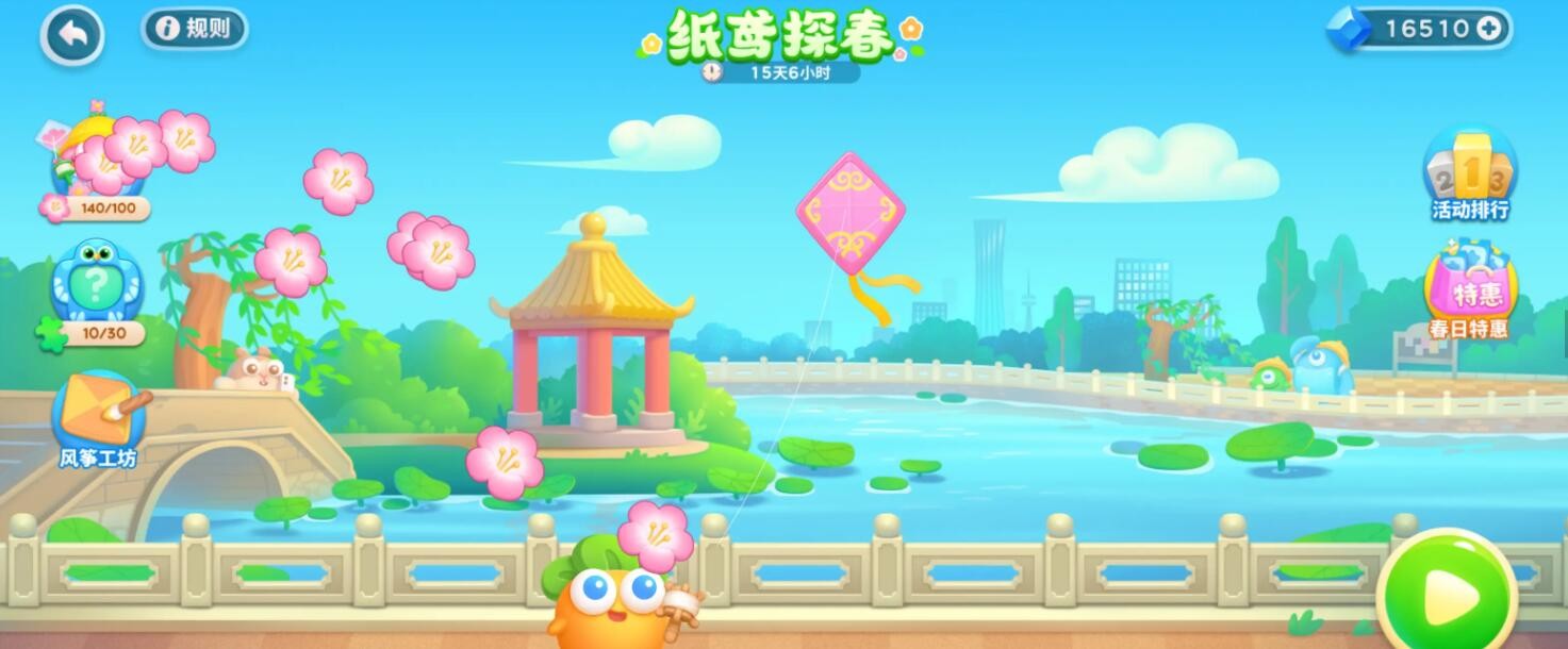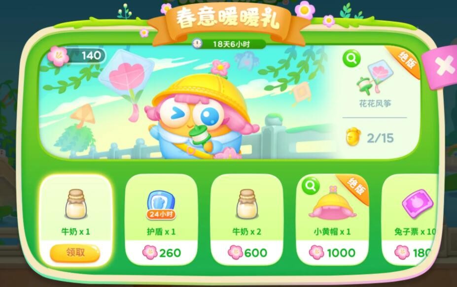 5、风筝制作完成后,一起来放飞风筝吧,制作风筝和放飞风筝都会获得春日花朵,收集春日花朵就可以获得超多奖励哟。