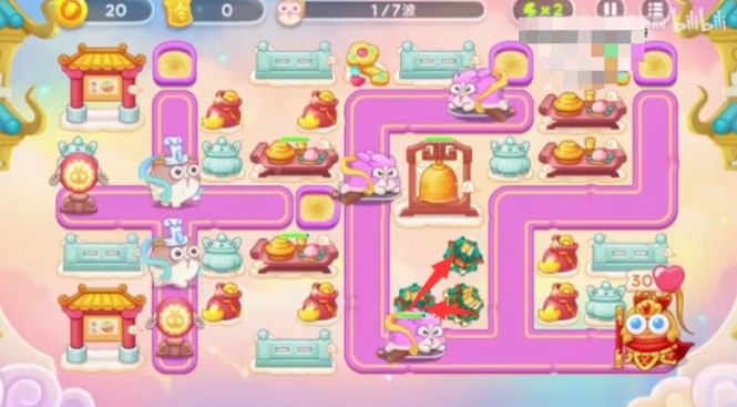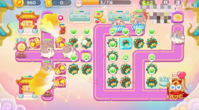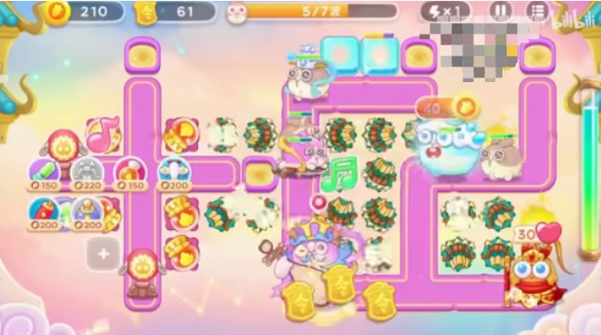 5、之后会有一个弹琵琶的兔子和冰冻兔,玩家要即使解冻炮塔,不要贪心,左侧可以多放毒针和喷火器。