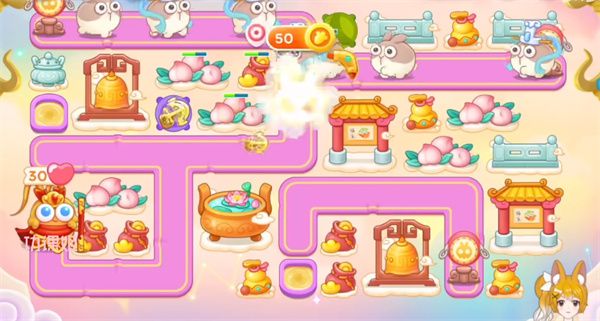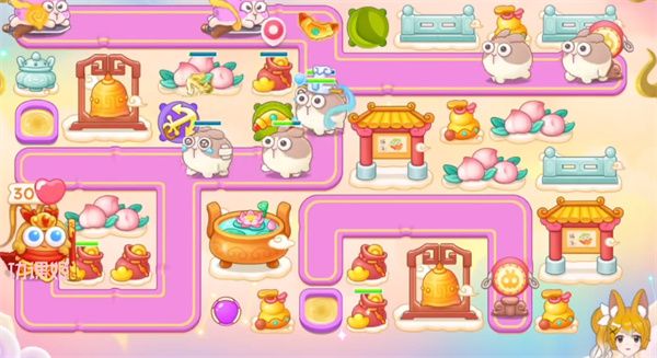 9、到了第五波出现仙女兔和滚筒兔,这两种兔子是比较肉的,所以就不建议锁头了,取消即可,后面只要控制好节奏就能轻松过关了。