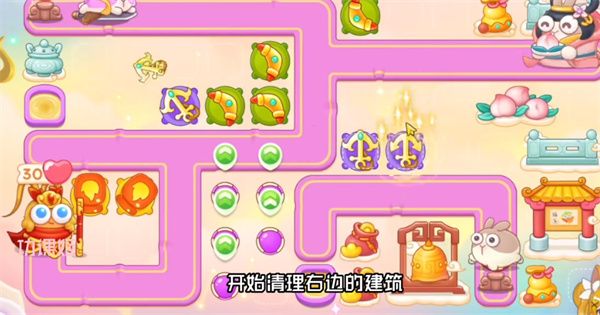 3、靠近右边的桃子还有钱袋哪一个先被打掉就在哪一个位置建造回旋镖;