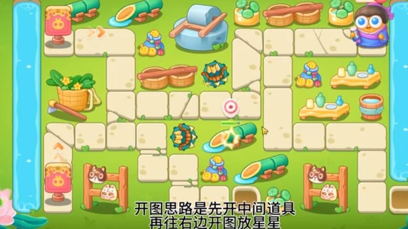 2、开局暂停,先开中间道具,再往右边开图放星星,刷到月亮最好,能减轻很多压力,粉兔及时锁头。