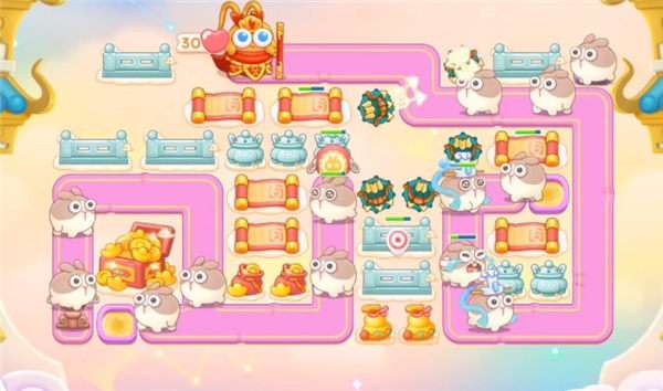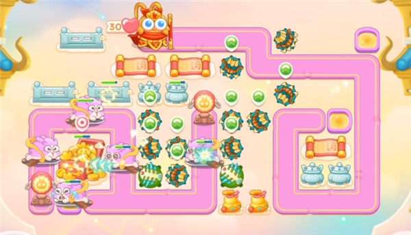 3、中后期可以把萝卜下面,靠外侧的卷轴等障碍物清理掉,不用急着建造炮塔,那里的输出效益不高,拿金币就行了。