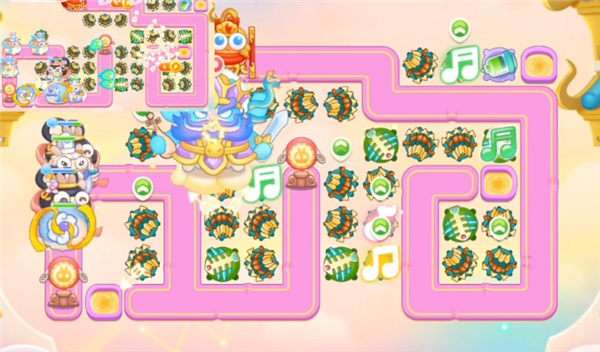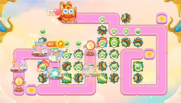 4、后期鞥天王来的话,右侧可以放满魔法球,中间也要锁定粉兔和天王打,第五波可以在起点放毒针,这个时候琴天王就来了,后面只要防御够就可以过。
