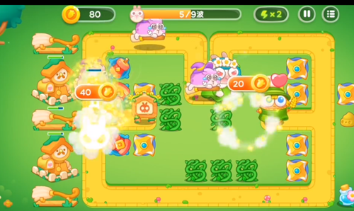 4、障碍物和兔子是一起来进行攻击的,右边的风扇塔是进行攻击右边的。