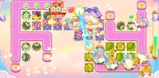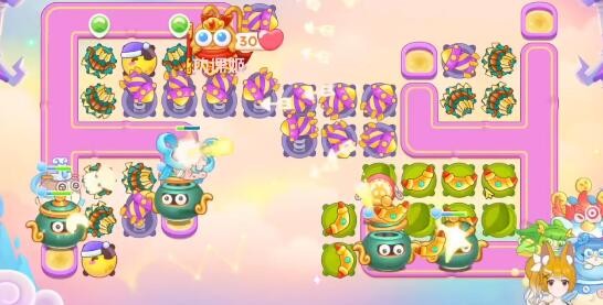 2、左上角记得多放几个烟花炮,第二波就会有会飞的兔子,下面放多重箭把大钟给打了,然后冲孔清理道具就可以,还是在第四波之前可以做到全清;