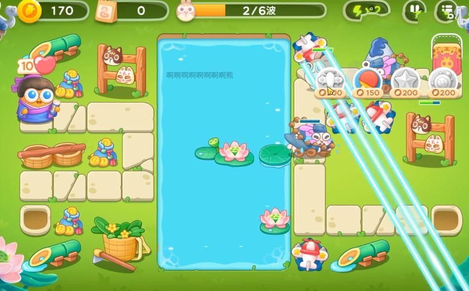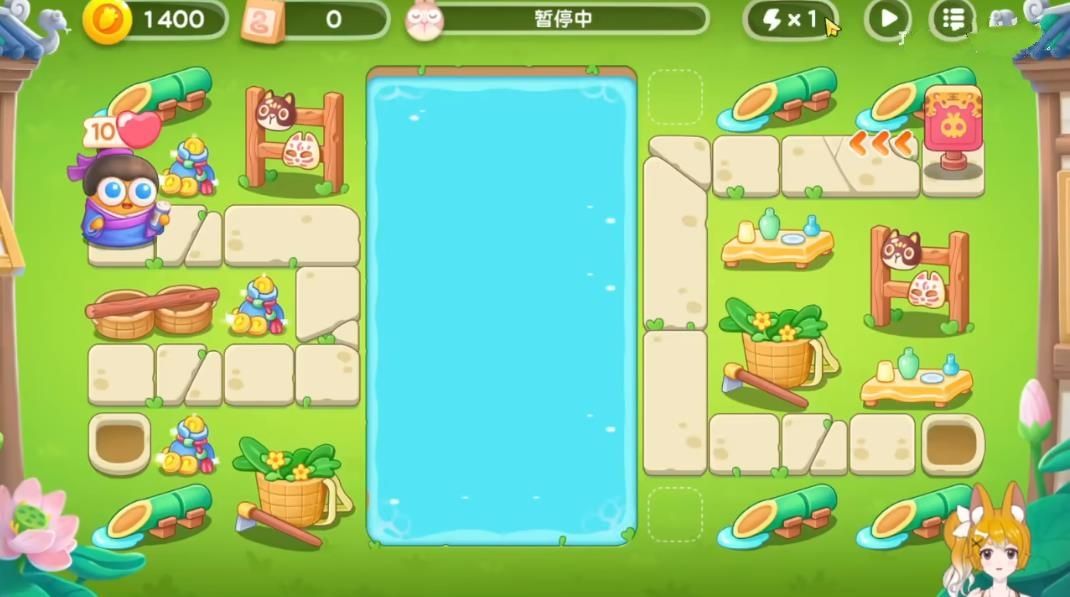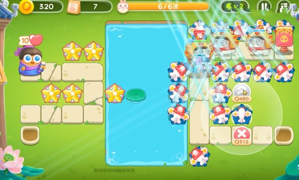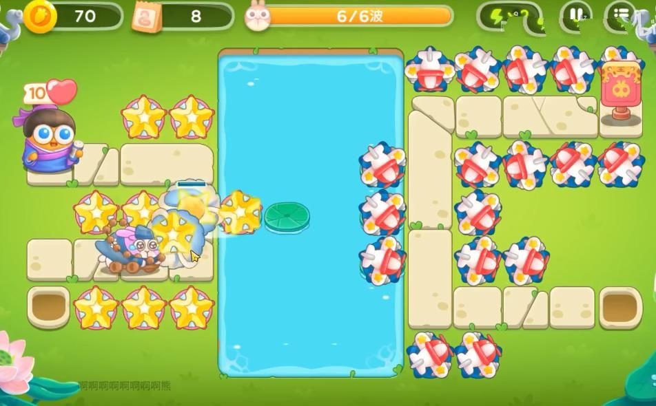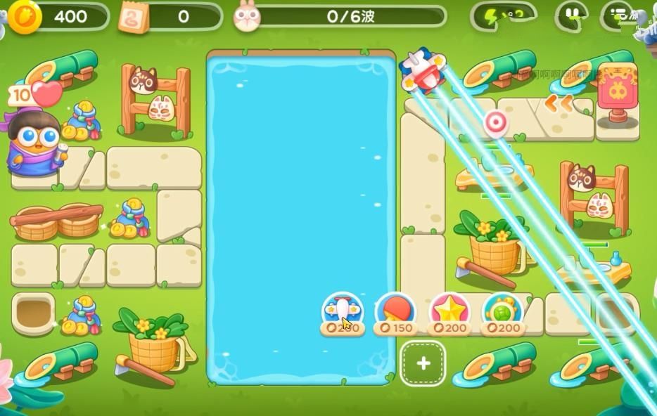 1、首先需要再怪物出口旁的空位上放上飞机,可以边打怪边清理障碍。前面的粉兔要锁头打掉,不然容易漏掉!