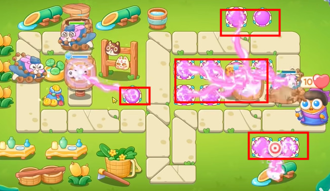 5,最后一波的时候玩家是可以看到怪物经过的路是都造了很多的魔法球,以下面排列的魔法球,这一关也是很轻易的完成过关。