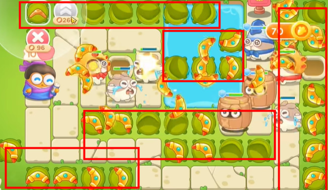 2,等到第三波的时候在图中位置伤再新加上6个飞镖,有金币就升级,再清楚周围的道具。