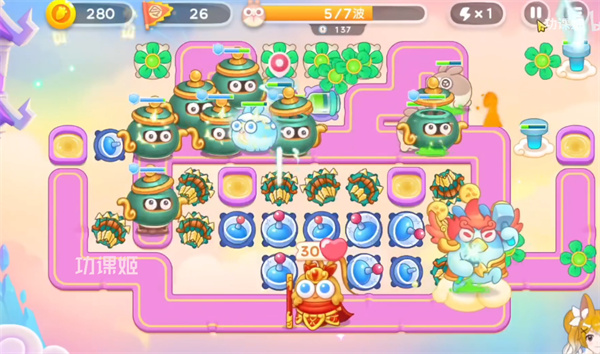 4、第四波的时候我们会遇上天王,我们暂时不优先锁定输出天王但是需要注意被冻结的炮台。