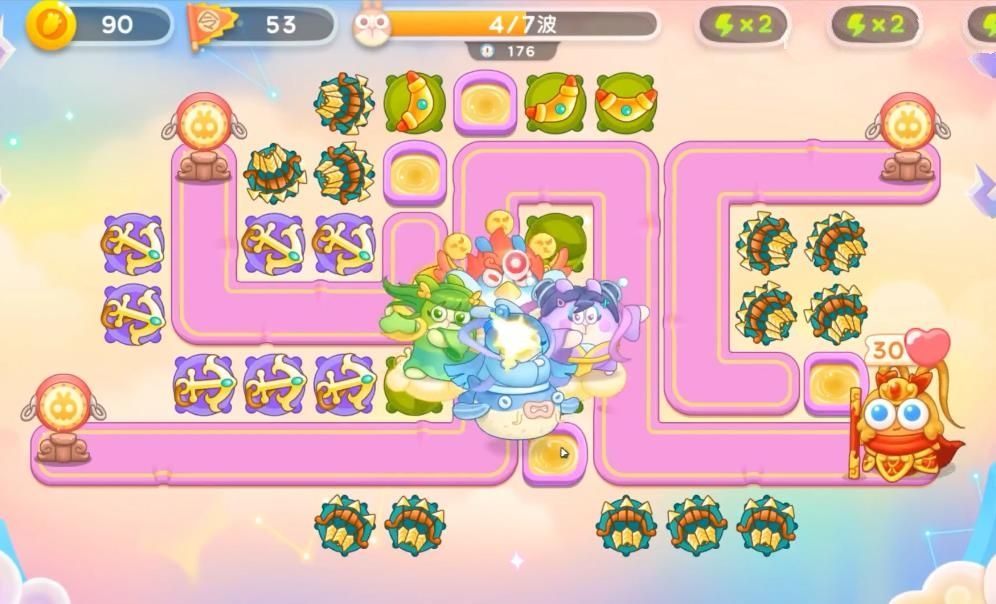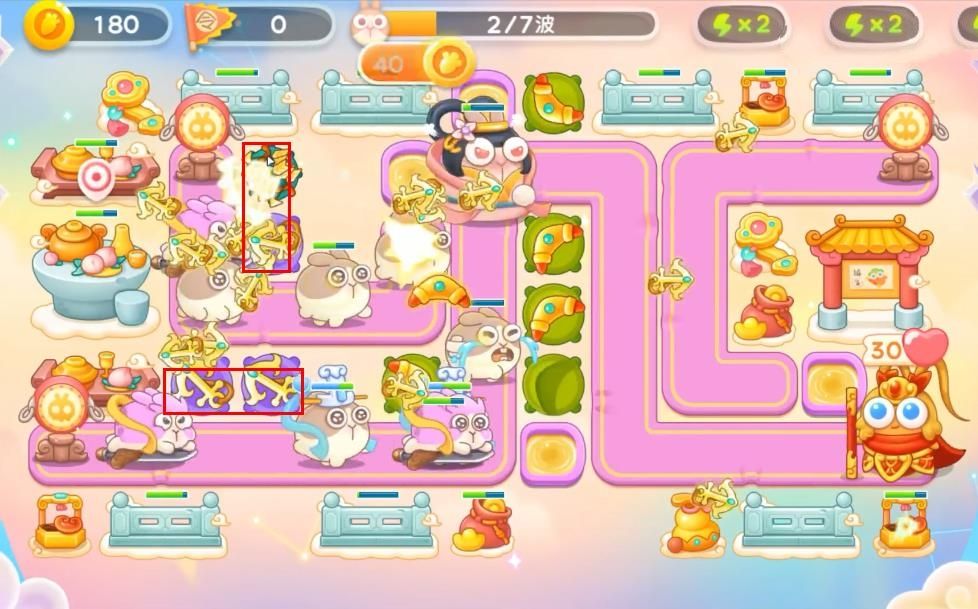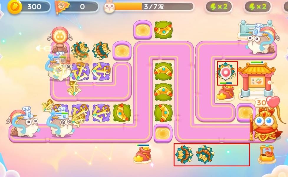 2、其实今天的防御塔还是挺不错的,就是钱袋稍微有点少了。用船锚清图的话确实是挺舒服的,基本上第三波就能做到个全清;