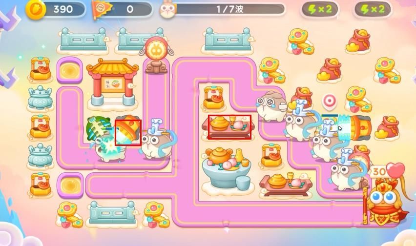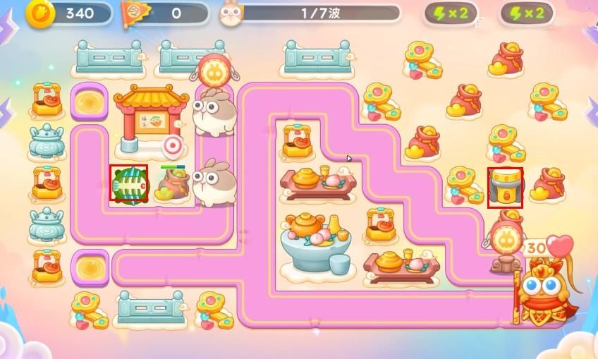 12、最后一波我们的布局如下图,最后一波之前会有大量兔子在一起,求稳的可以先打兔子